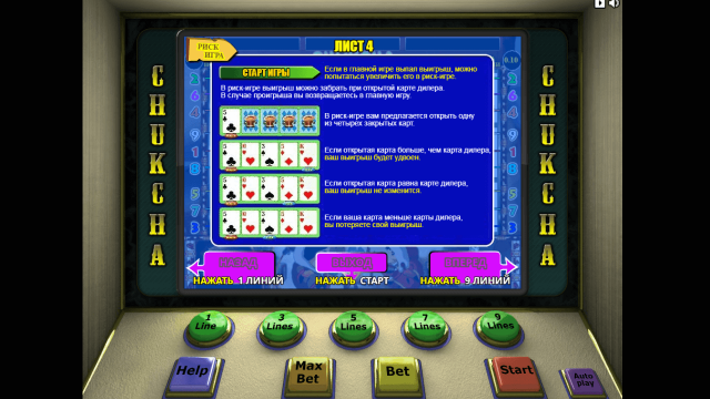 Рисковый раунд доступен после каждого победного спина. Игроку необходимо открыть карту, номинал которой окажется старше, чем у противника. Если оппонент откроет двойку, геймер гарантированно не проиграет.