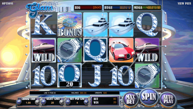Игровой аппарат Mega Glam Life выделяется роскошным оформлением и красивой 3D графикой. Основные достоинства слота — крупные коэффициенты выигрышей, выгодные бонусные опции, фриспины с дополнительными множителями, наличие прогрессивного джекпота, высокий уровень отдачи. Не хватает только риск-игры на удвоение.